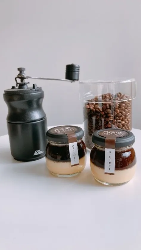 コーヒーゼリーに使われているコーヒーは、コロンビア、ブラジル、グアテマラの豆を用いて、深煎りの特徴であるしっかりとしたコクと苦みを持ちつつ、豊かな香りと飲みやすさを併せ持ったブレンドで、普段から良くコーヒーを召し上がるコーヒー通の方にもご納得いただける、本格的なコーヒーの味わいを感じていただける仕上がりです。「徳山コーヒーボーイ」のコーヒーの美味しさを最大限に引き出し、当店のなめらかプリンとの調和を考える上で、コーヒーの抽出時の濃さや、ゼリーにした際の食感など、何度も何度も試作を重ねました。無添加で優しい甘み、なめらか食感のプリンと、コーヒーのコクのある苦みとゼリーのプルっとした食感のコントラストが際立つ自信作です。暑い夏の日、上質な大人の癒しを求める方にはまさにうってつけのプリンとなりました。