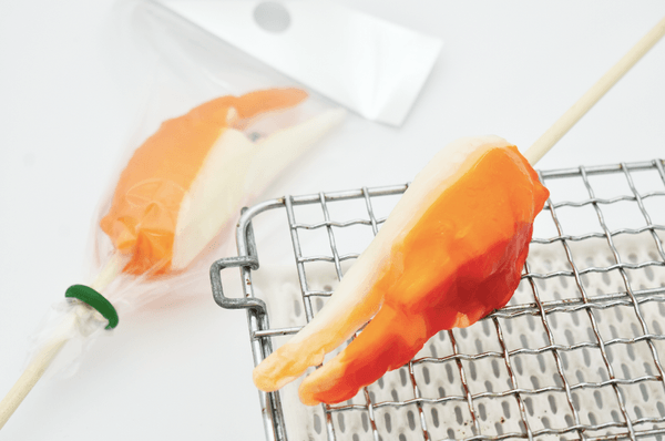 仙台以北では唯一の店舗であるパパブブレ札幌ステラプレイス店では、従来販売していた「とうきびロリポップ(ポップコーンフレーバー)」に続き、蟹爪キャンディを開発しました。