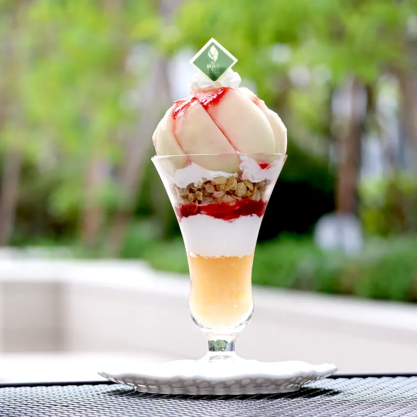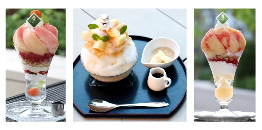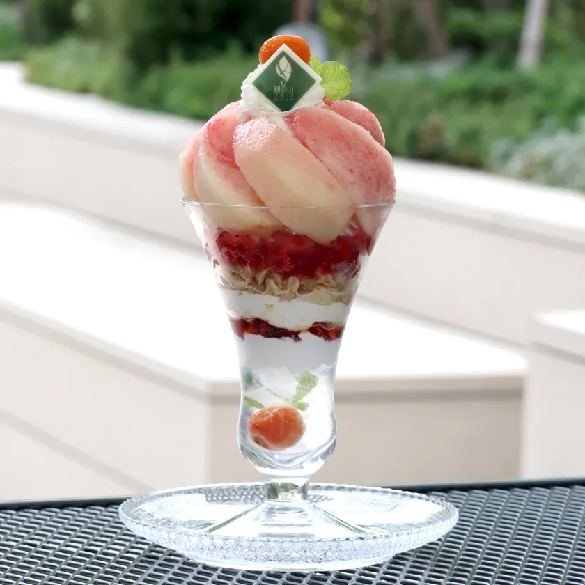 観音山フルーツパーラー表参道にて夏が旬の桃スイーツを新発売! 桃をまるごとひとつ使用したパフェや絶品かき氷などをご用意 当店オリジナルのリキュール使用の“大人のパフェシリーズ”も