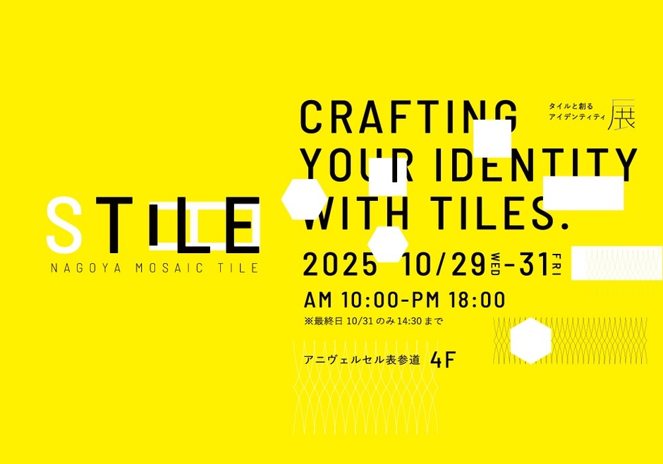名古屋モザイク工業は、10月29日から31日まで、アニヴェルセル表参道4Fにて企画展『STILE ~タイルと創るアイデンティティ~』を開催いたします。