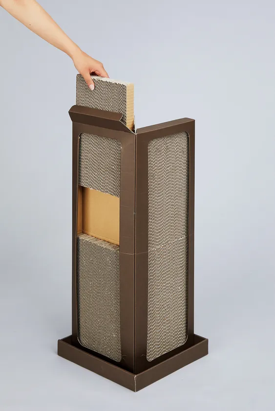 中の爪とぎは、上下、左右、表裏と組み換えOK。 合計8面使えてコスパも抜群。研ぐ面に偏りがある子でも、入れ替えで使えます。