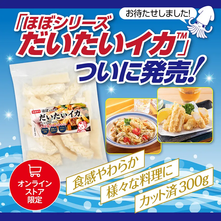 カネテツデリカフーズ株式会社(本社:神戸市、代表取締役社長:村上 寛)は、本物のイカのような味・食感・見た目を再現した練り製品「ほぼシリーズ だいたいイカ」をオンラインストア限定で2022年8月1日(月)より予約販売を開始します。