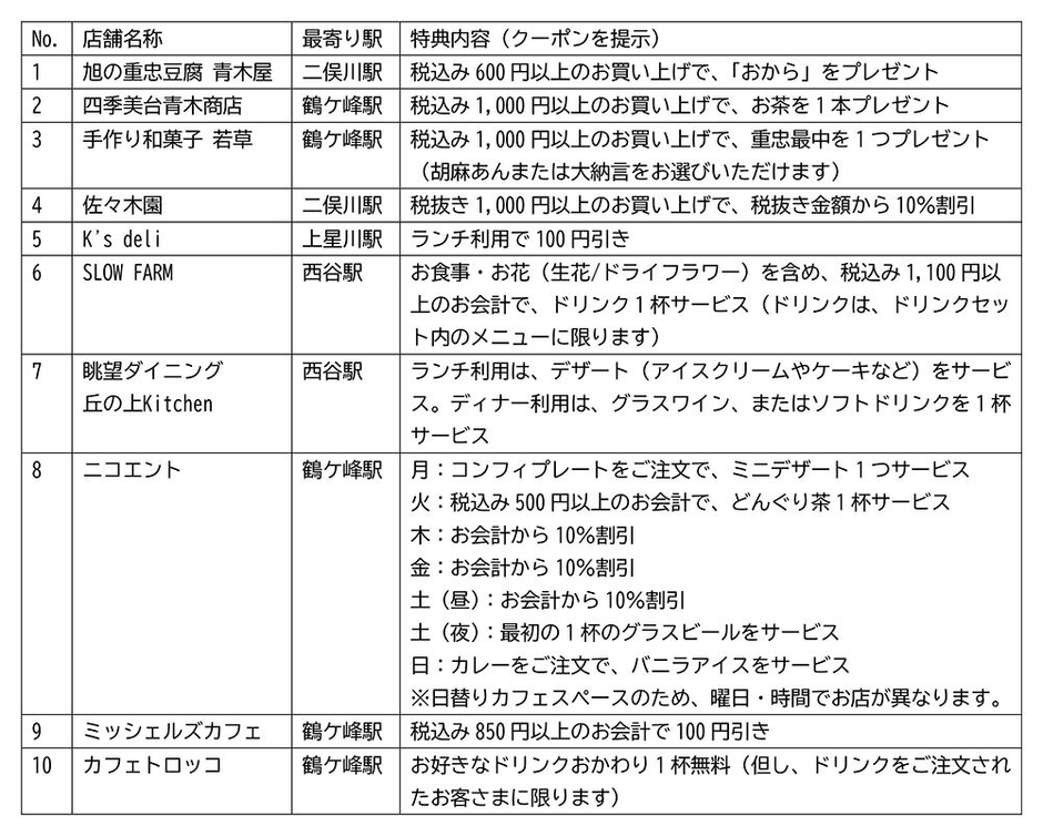 ■沿線のクーポン対象店舗と特典〔10店舗〕