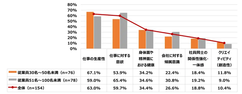 なかでも「仕事の生産性」、「仕事に対する意欲」に関しては半数以上が回答する結果に。