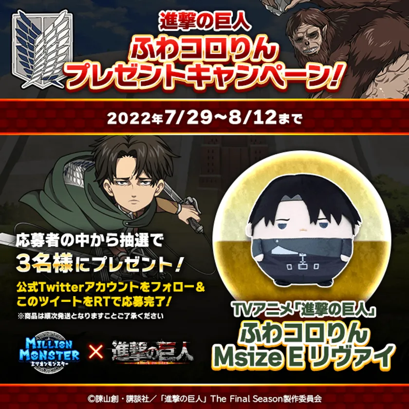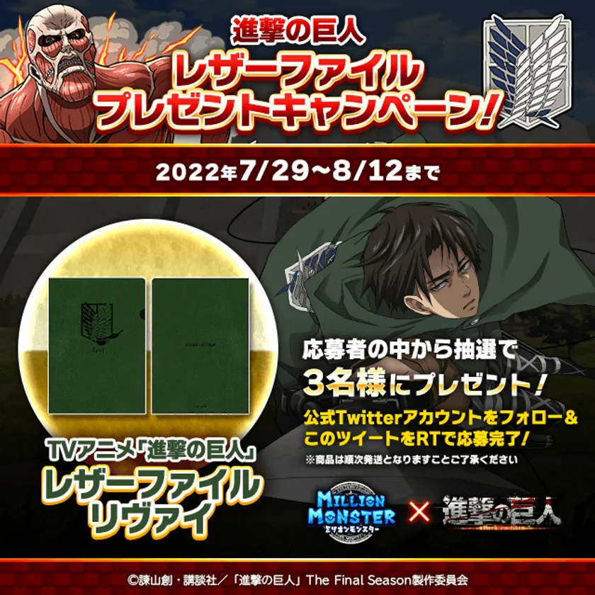【『ミリオンモンスター』×TVアニメ「進撃の巨人」The Final Season コラボ概要】