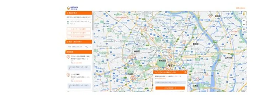 ・画面左に検索・絞り込みメニュー、右に地図画像(検索結果表示領域)をレイアウトしています。