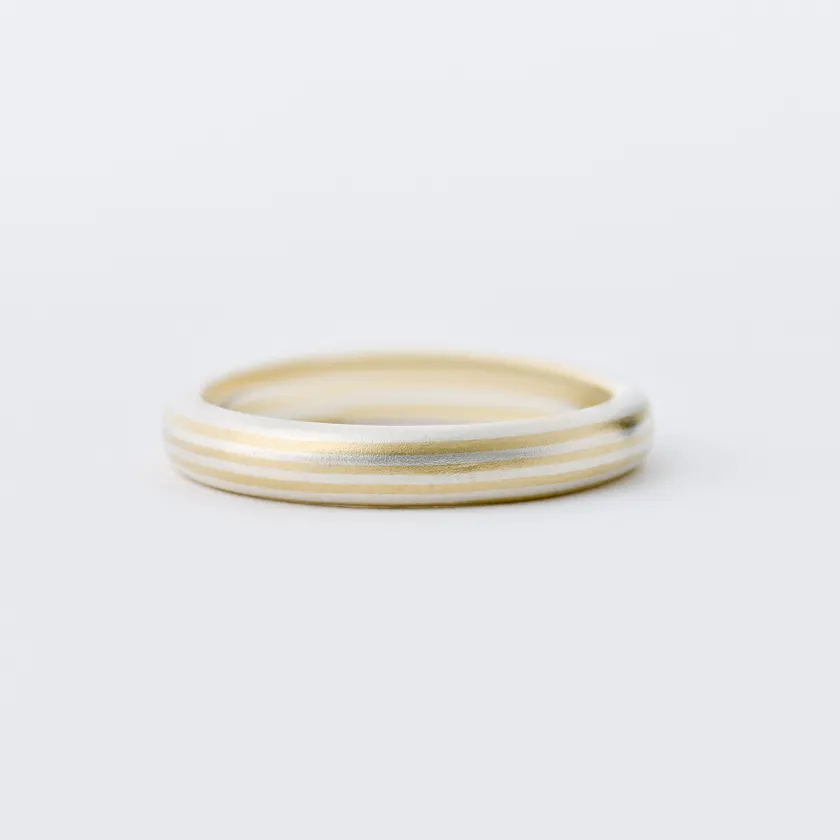 江戸時代に生まれ、日本の伝統技術として世界にも知られている木目金。異なる地金を複数組み合わせて木目のような模様を作り出す技法で、二つとして同じ表情を作ることができません。