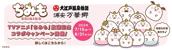 大江戸温泉物語ホテルズ&リゾーツ株式会社(本社:東京都中央区、代表取締役:森田満昌)が運営する「大江戸温泉物語 浦安万華郷(千葉県 浦安市)」では、2022年7月からテレビ東京で放送が開始されたTVアニメ【ちみも】とのコラボキャンペーンを開催いたします。