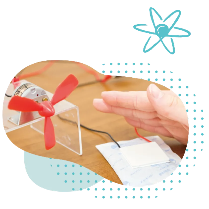 電流を流すと温度が変わるふしぎな装置「ペルチェ素子」を使って、温度差を利用した発電実験をしてみよう。