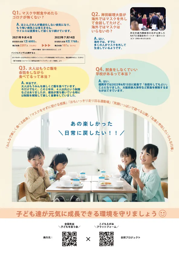 保護者団体が全知事・市区町村長・教育長へ マスクや黙食に対する子どもへのアンケート回答集と質問状を発送