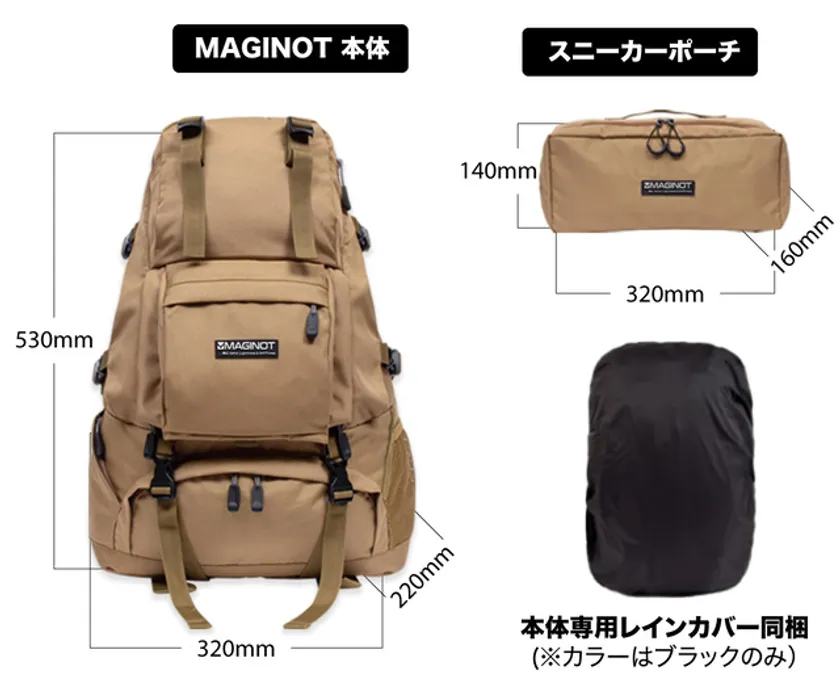 MAGINOT(マジノ)は本格的な登山やキャンプから、日常までカバーできる、ファッション性の高いバックパックです。また、撥水能力に優れた「Oxford Fabric 600D」を使用しており、雨の日や露でも心配ありません。すでに海外では販売しており、お客様から絶賛されております。