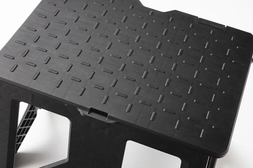事故の原因として多い天板の割れを解消するため、樹脂踏台で主流な折れ構造ではなく、「一枚構造」を採用。そうすることで強度を確保でき、割れにくい安全性と長く使える耐久性を実現。