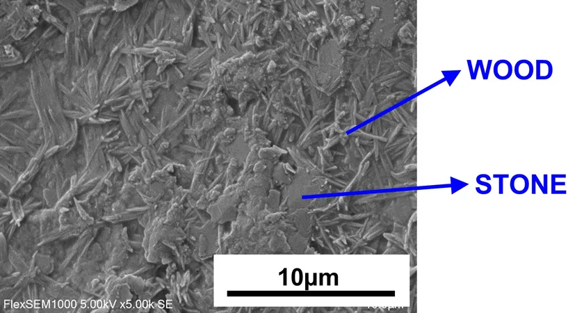 100%天然バイオマス系生分解性熱可塑性材料の電子顕微鏡写真
