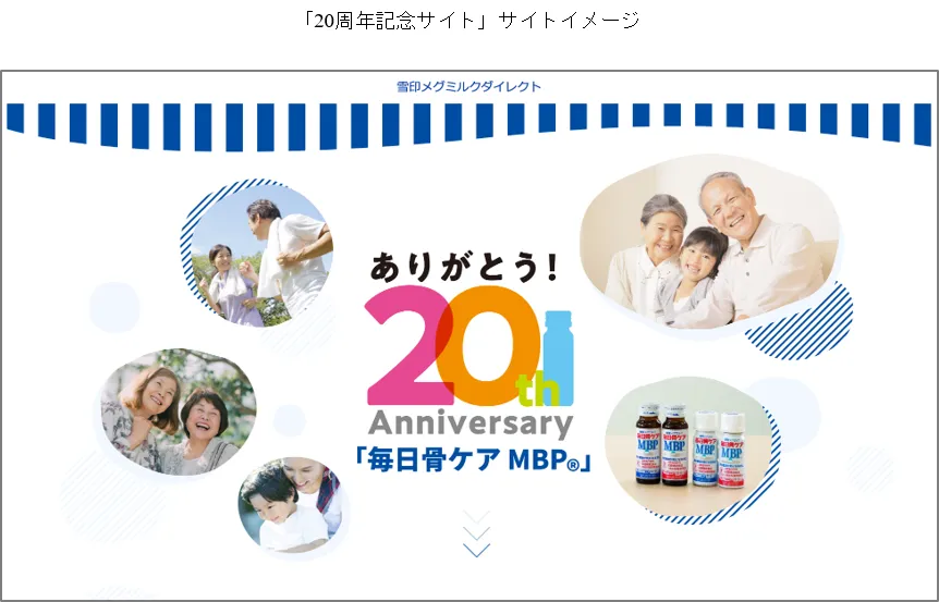 このたび、皆さまにもっとMBP(R)のことを知っていただくために、発売20周年を記念した特別サイト『ありがとう!20th Anniversary 「毎日骨ケア MBP(R)」』を開設いたしました。