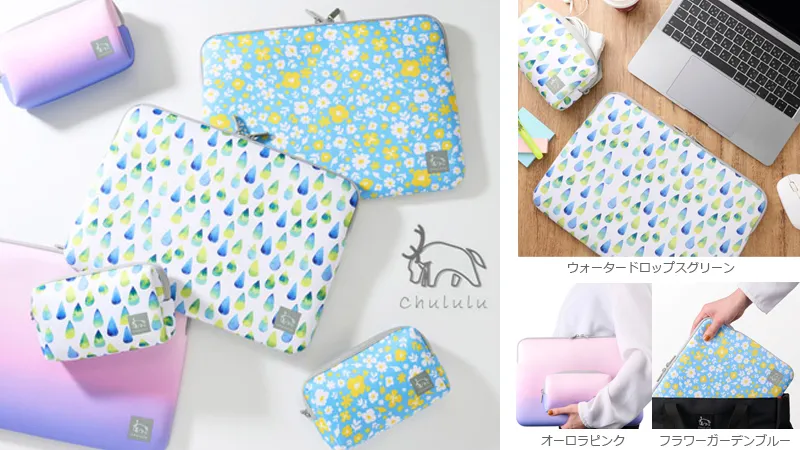 ハクバ写真産業株式会社(本社:東京都墨田区)は、北欧のトナカイをイメージしたブランド「Chululu(チュルル)」より、「Chululu(チュルル) PCインナーケース 13.3インチ&マルチポーチ」に3柄(フラワーガーデンブルー/オーロラピンク/ウォータードロップスグリーン)を追加発売いたします。