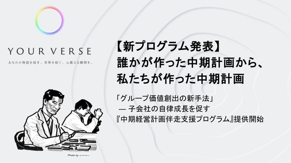 株式会社Your Verse(本社:東京都足立区、代表取締役:長谷川朋弥)は、本日(9月22日)、上場企業グループを対象に、子会社の中期経営計画を導き出す作成伴走支援プログラム「(サービス名)」の提供を開始します。