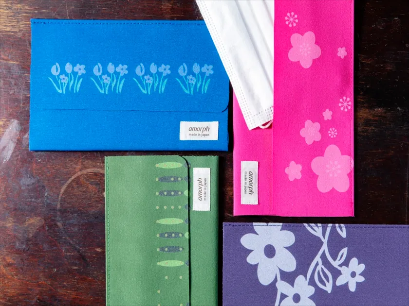 amorphは、ブックカバーやロールペンケースが発売以来約4年間人気が継続しています。2020年から、マスクケース、スマホノートケース、一言箋付ペンケース、三つ折り財布、眼鏡ペンケースと、新しいライフスタイルを社会に提案するアイテムを発表し続けています。