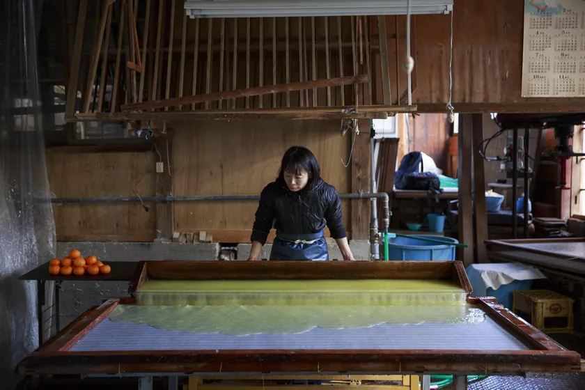 アート広告の製作は、越前和紙の老舗工房、五十嵐製紙が手掛ける「Food Paper」を使用しています。廃棄予定の野菜や果物、調理時に残った野菜の皮やヘタの部分等を原材料に作られた植物由来の自然に優しい紙です。適量の生産と消費を促し、食品ロスを出来るだけ出さず、サスティナブルな社会になることを目指した環境にやさしい素材として注目されています。広告ポスターへの活用は初の試みとなります。