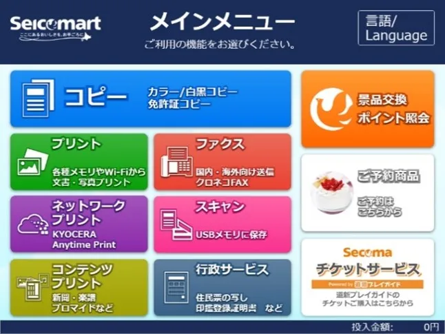 ※無人店舗、狭小店舗などの一部店舗にはマルチコピー機が設置されていません。ご利用可能店舗の詳細はセイコーマートホームページ(http://www.seicomart.co.jp)ご確認ください。