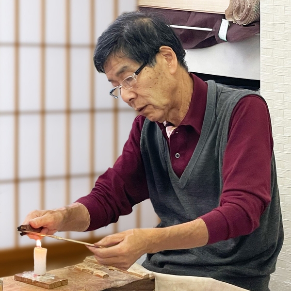 兵庫県在住。茶杓師として素材と向き合う一方、一級建築士として能楽堂など伝統芸能空間の設計にも携わり、伝統素材や古建築文化への造詣も深い。長年NHKカルチャーで茶杓制作を指導し、素材の個性を生かす精緻な削りに定評がある。(NHKカルチャー兵庫県内教室で指導中)