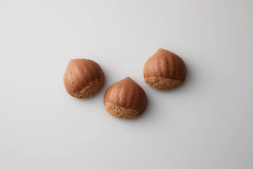 小さなギフトとしてもおすすめの、秋限定発売の小ぶりなマロン型ミニパウンドケーキは、ころんとした見た目が愛らしいだけでなく、使用する素材もオーガニックにこだわっています。ほっくりとしたマロングラッセを中に包み、ミルクチョコレートとケシの実でコーティングしました。しっとりとした食感の中で広がる、贅沢な栗の風味をご堪能ください。