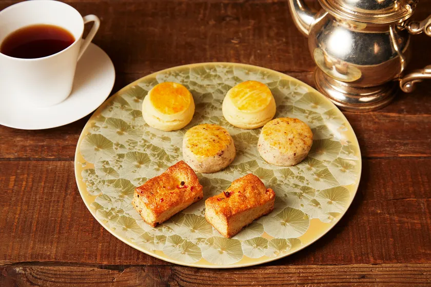 味わい深い旬の味覚をご堪能いただける、秋限定アフタヌーンティーをご用意いたしました。スイーツには、パンプキンのムースやモンブラン、2色のさつまいもが彩るスイートポテト、洋ナシのパフェなど、秋ならではの素材を贅沢に使用。リンゴの皮に見立てて赤く色づけされたフランスの菓子パン、ショーソン・オ・ポムも加わり、上質な旬の味覚だけでなく趣深い秋の色彩もお愉しみいただけます。セイボリーは、食用モミジや秋野菜、キノコ、ポルチーニ茸のコンソメ、秋刀魚竜田揚げなど、この時期にしか味わえない旬の食材を多彩な味わいに仕上げました。セイボリーの落ち着いた色合いは、紅葉に彩られた情緒あふれる秋の山を彷彿とさせます。