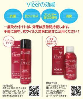 光触媒スプレーVieer(ウィール)とは、消臭・抗菌・抗ウイルスコーティングができる