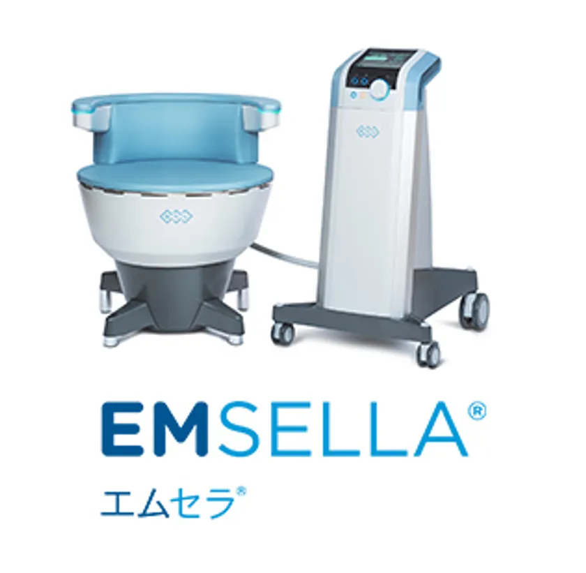 エムセラは、服を着たまま座るだけで骨盤底筋を鍛えることのできる新しい治療機器です。骨盤底筋を鍛えることで、くしゃみなどお腹に力が入った際に生じる腹圧性尿失禁と、トイレに行く寸前に生じる切迫性尿失禁の両方を改善します。また、尿失禁治療だけではなく、加齢・出産などに伴う性的不快感に対しても治療が可能です。日本では保険適応ではありませんが、アメリカやEUなど25か国で認可の下りている機器となります。