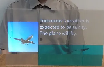 これまで、日本語のみを認識し、字幕としてアクリル板などへの表示が可能でしたが、新たに、英語、中国語、韓国語、ウクライナ語、ベトナム語への対応を可能としました。窓口側が言語を選択後※2、伝えたい内容を日本語で話せば、リアルタイムに翻訳され、相手側の透明スクリーンに字幕として表示されます。