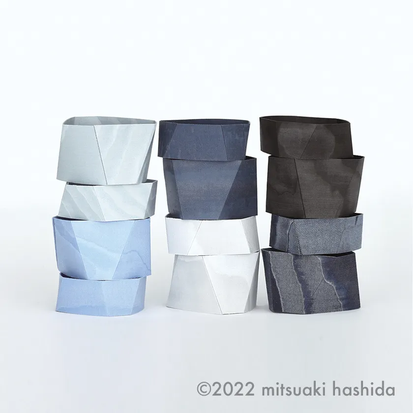 NUNOUSを折り曲げ、多面体で構成した軽くてしなやかなバスケット。何も入れなくても美しいシャープなフォルム、リビングやダイニング、玄関や寝室など、様々な空間にアクセントを加えます。