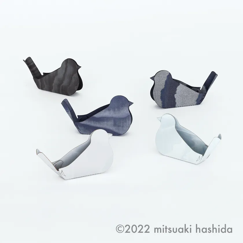 小鳥の形のポケットは、名刺やポストイット、ペンなどを入れて、デスク回りをスッキリさせます。NUNOUSの自然な風合いはインテリアに馴染み、小鳥の形とともに、場を和らげてくれます。デスクの上以外にも、ピンなどで壁に付けることもできます。
