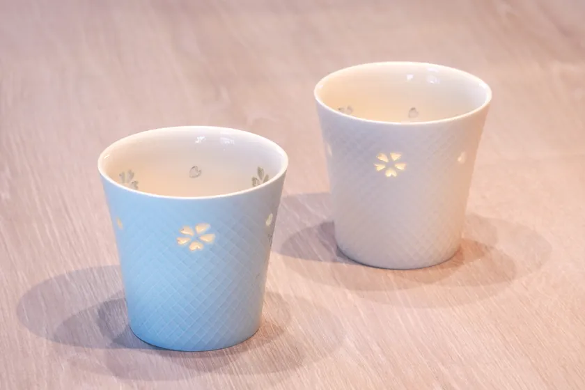 (万華鏡ロックカップ 桜の里シリーズ 左から青磁、白磁)