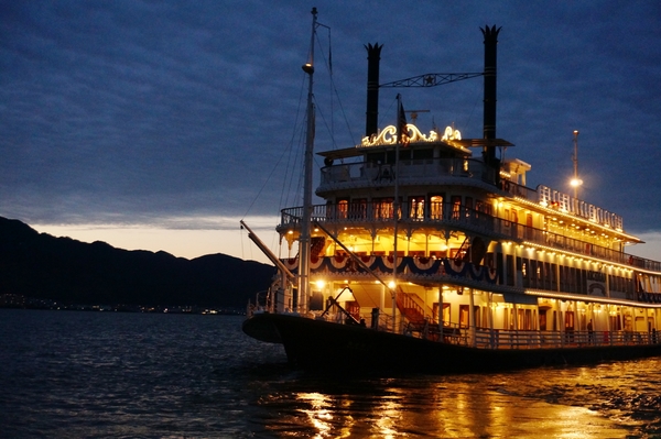 赤いパドルが目印の「外輪船ミシガン」は、びわ湖を代表する大型観光船です。1982年に就航以来、これまでに延べ900万人以上の方にご乗船いただいております。最上階デッキからは、びわ湖南部の美しい夕景や夜景をご覧いただけます。また、レストランシップとして軽食から本格的なお料理まで楽しめるだけでなく、音楽ライブや観光案内も楽しむことができるエンターテイメントクルーズ船です。