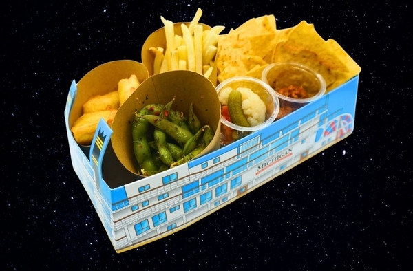 ミシガンを模した特製ペーパーボックスに、ポテト、
