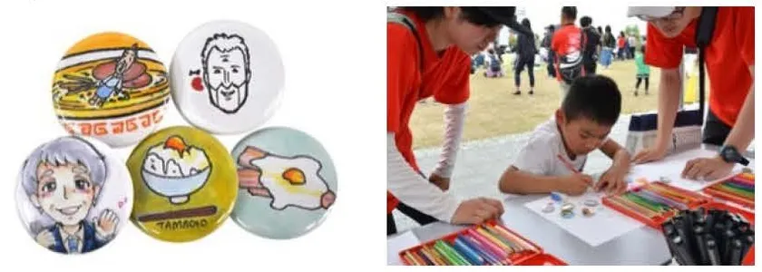 缶バッジの完成イメージ/ワークショップの様子