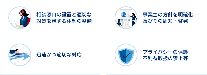 【パワハラ防止法改正によって事業者に義務付けられた4つの項目】