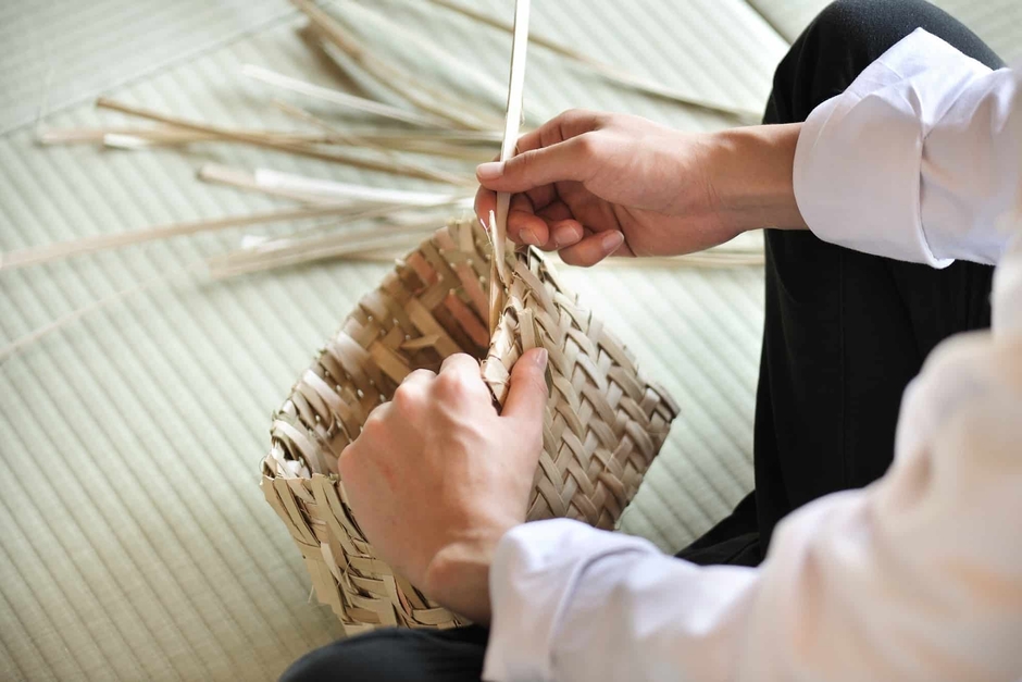 ■含まれるもの:やみかご作り、材料探しの散策、達人の工房見学、資料館訪問、草木染め風呂敷1枚