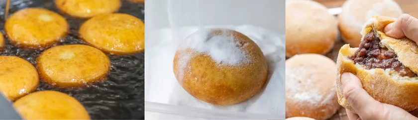 そこで、オープン1周年を記念し、満を持して「熱海ばたーあんパン」に続く、第2弾『熱海ばたーあんどーなっつ』が新登場!外はサクっと、中はふわっとした軽い食感で、生地の中からは、バターを練り込んだ又一庵自慢の粒あんがとろーりとろける、当店ならではの「どーなっつ」に仕上げました。