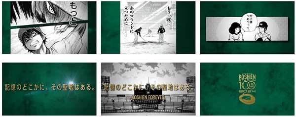 また、キービジュアルには、100周年以降も伝統を受け継ぎながら未来へ向けて成長する決意を込めた「KOSHIEN FOREVER」のワードに、各年代で愛された作品の主人公たちを通じて、皆様の思い出の中にある甲子園を呼び起こしていただきたいという思いから「記憶のどこかに、その聖地はある。」のフレーズを付しています。