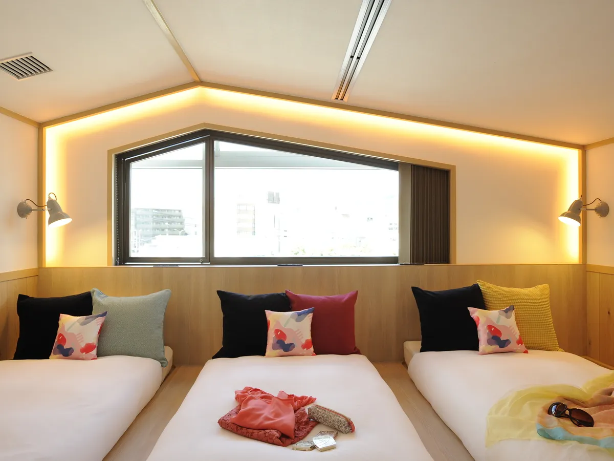 京阪電車三条駅直結の CAFE と HOSTEL が融合した「CAFETEL 京都三条 for Ladies」。グランピングをイメージした客室は、女子トークが盛り上がる空間デザインおよび美容家電やオリジナルメニューなど、「女子旅をデザインする」をコンセプトに、京都三条から女子旅を Happy にする仕掛けが多数。