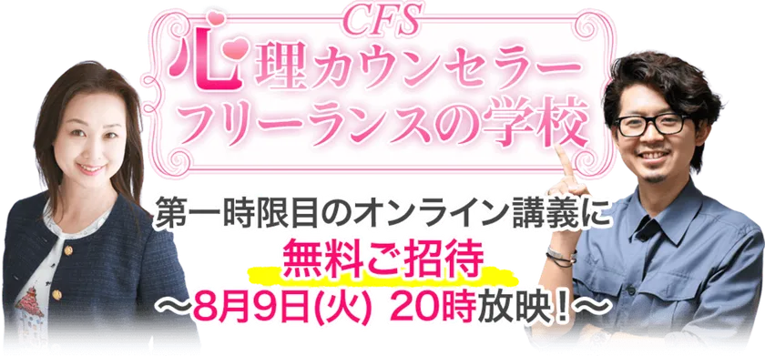 「心理カウンセラーフリーランスの学校(CFS)」開講記念 19.8万円のコースの初回講座を無料ご招待 8月9日20時オンライン開催