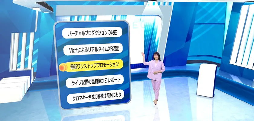 最新鋭の同録グリーンバックスタジオを東京・神田に構える「ワンストップスタジオ東京」では、2022年7月に、世界の放送局で使用される、Vizrt社の3Dリアルタイムグラフィックシステムを導入しました。