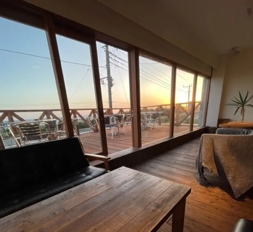 瀬戸浜ビーチの潮の香りが漂うスローカフェ。ウッディな店内で淹れたてのドリップコーヒーをどうぞ。