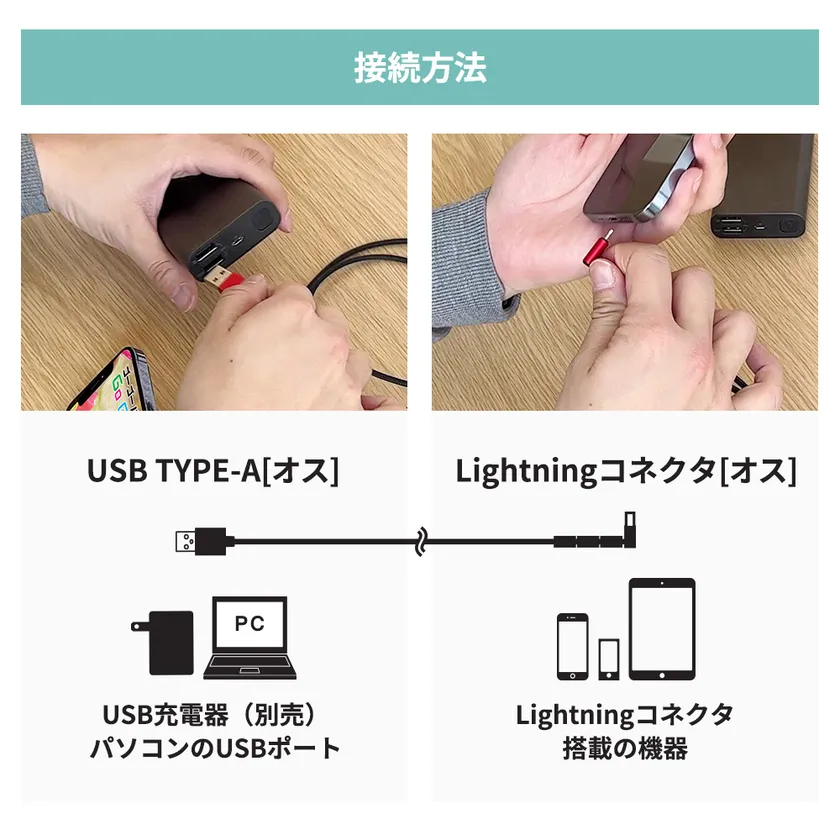 コネクタ形状:USB TYPE-A(オス)/Lightning(オス)