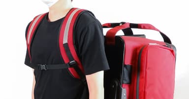 転がせば楽に移動ができ、足場が悪い時には背負って、とっさの時には持って。シーンに合わせた移動が可能です。