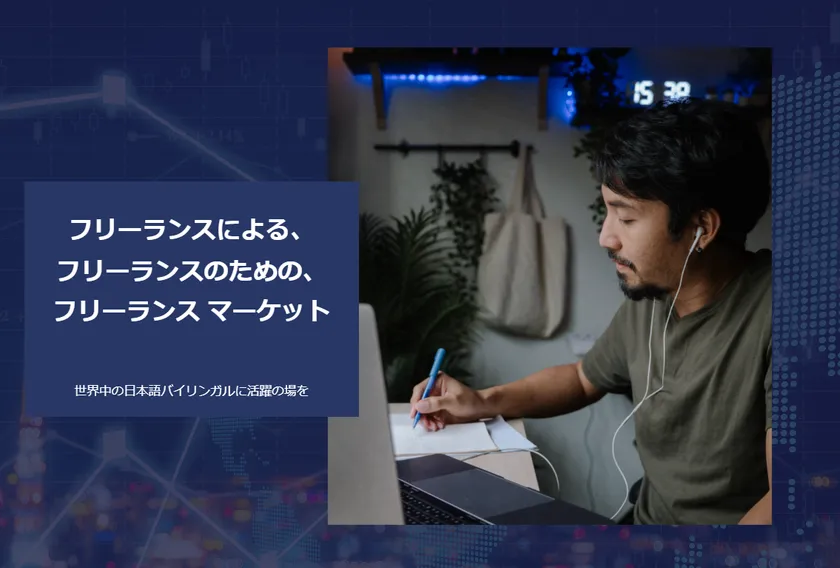 ●オンラインマッチングの強みを活かし、効率的にグローバルにスキルマッチングを行いつつ、マッチングの仲介手数料を極力低く抑えることでフリーランスの皆さんの活躍をサポートするのが弊社のミッションである、と自身もフリーランスとして活動する当社代表が考え、本サービスの提供を開始しました。