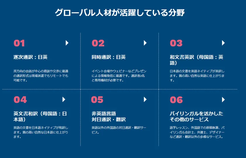 事業内容 : 日英通訳・文書翻訳、通訳者の派遣・手配