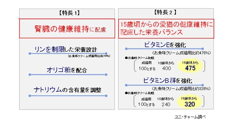 そこでこのたび、『銀のスプーン 三ツ星グルメ』お魚味クリームから、高齢のネコちゃんが食べやすく、健康維持に配慮した「15歳頃から」を全国で発売します。