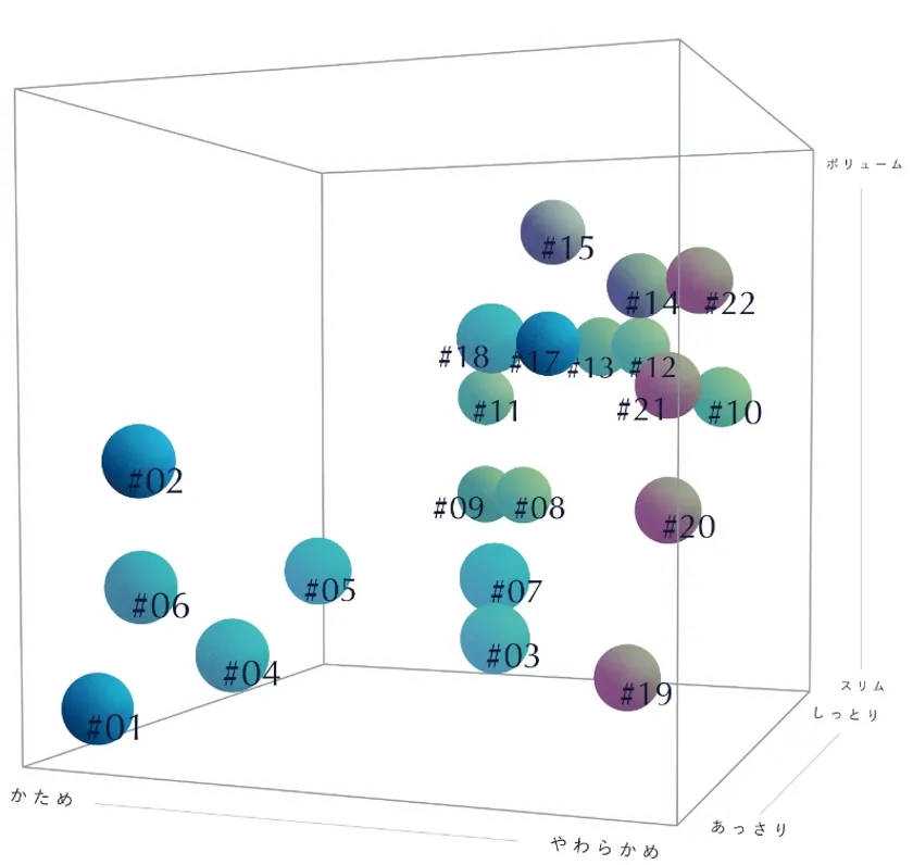 フィーリングバーを参考にしながら、実際の寝心地をお試しいただくことで、ワインを比較するように、繊細な違いをお楽しみいただけます。