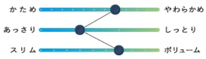 ▼寝心地の違いをデザイン化した「フィーリングバー」
